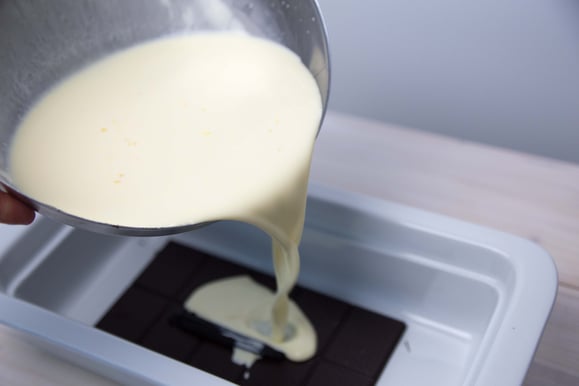 Einfach eine Tafel Schokolade auswählen (für das besondere Aroma eine spezielle Schokolade nehmen) und übergiessen.