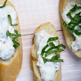 Steamer Rezept:Pilz-Geisskäse-Basilikum-Bruschetta. |