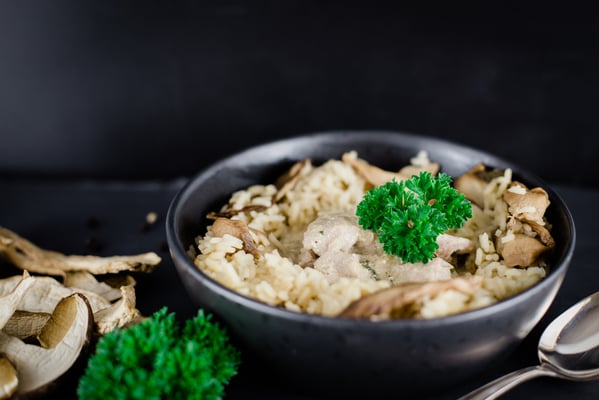 Pilzreis mit Schweins-Gschnetzeltem