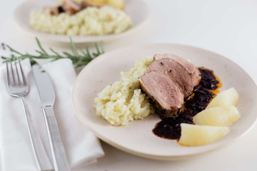 Falsche Filets mit Birnen und Wildreis