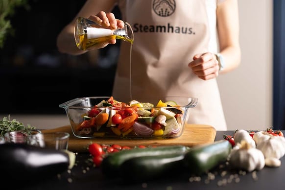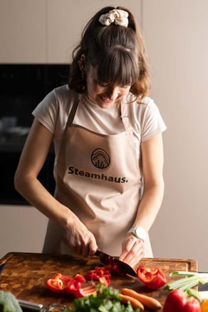 Mein Ziel mit Steamhaus ist es, dich zu inspirieren, deinen Kombi-Steamer regelmäßig in deiner Küche einzusetzen und dessen Einfachheit zu entdecken. Ich möchte, dass du mehr Zeit mit deiner Familie, Freunden und deinen Hobbys verbringen kannst, anstatt stundenlang in der Küche zu stehen. Zusätzlich profitierst du von gesundem und feinem Essen, dass einfach nur Spass macht. Lass uns gemeinsam mit unseren Kombi-Steamer oder Dampfgarer kochen und das Leben geniessen!